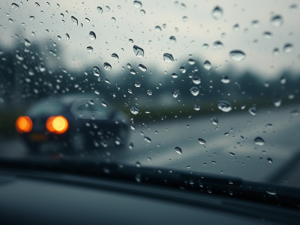 I’m sitting in the car, not driving, just waiting. Rain falls steadily, tapping the roof in soft, uneven rhythms. The windshield gathers it—small drops landing, spreading, finding one another. Some cling for a moment, suspended, others begin to move, pulled by gravity and the curve of the glass. They wander, zigzag, slow, then suddenly speed up, merging and separating, all drifting toward the bottom edge.